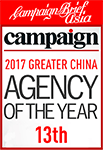 Campaign Asia Brief 2017 大中華區年度廣告公司排名 13位